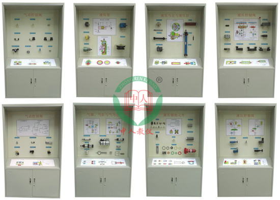 氣動液壓元件陳列柜采用實物或模型以及必要的圖文資料展示常見液壓、氣動元件的基本類型與基本結構。氣動液壓元件陳列柜每個模型都配備文字標牌。